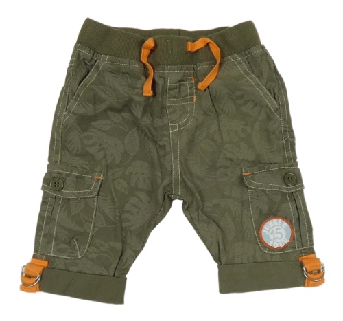 Khaki cargo plátenné rolovacieé nohavice s listami a nášivkou a úpletovým pasom Smile