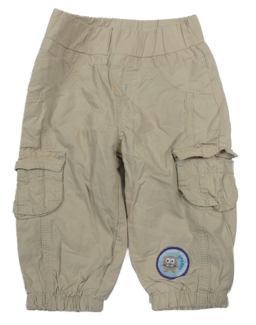 Béžové plátenné podšité nohavice s vreckami a nášivkou Topolino