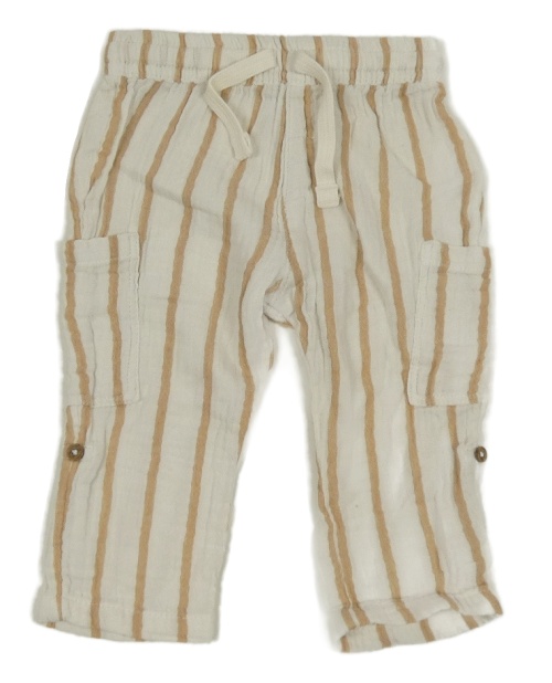 Smetanovo-béžové pruhované mušelínové roll-up nohavice s vreckami F&F