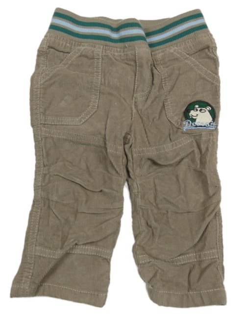 • Hnedošedé é menšestrové podšité nohavice s nášivkou a úpletovým pasom s pruhmi dopodopo