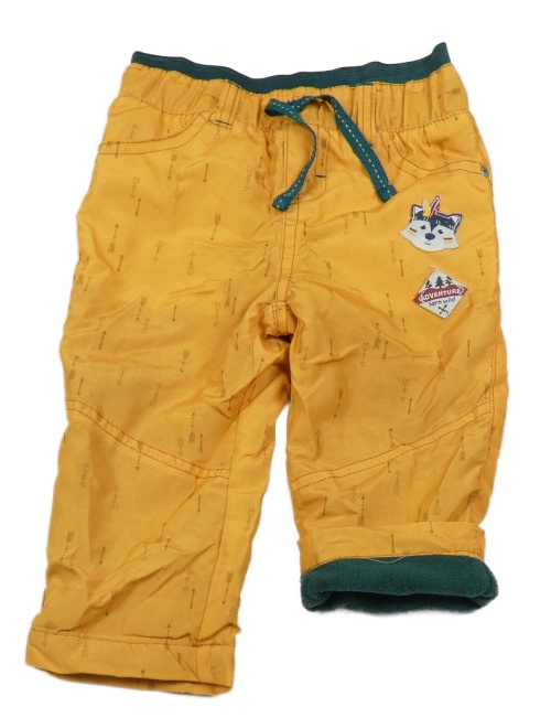Okrovo-tmavozelené šušťákové podšité nohavice s nášivkami Ergee