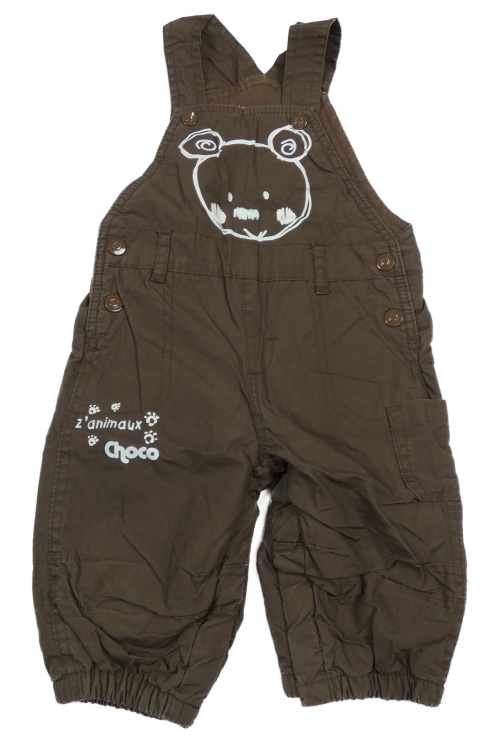 Tmavohnedé plátenné na traké zateplené nohavice s medvedíkom a vreckom Petit Kimbaloo
