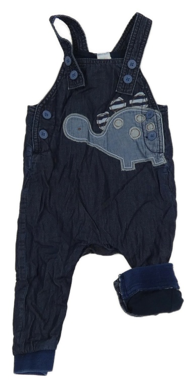 Tmavomodré podšité laclové kalhoty riflového vzhledu s dinosaurom Miniclub