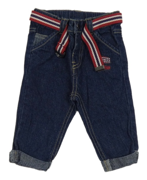 Tmavomodré rifle s opaskom a nášivkami