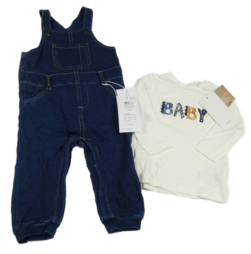• Nové - 2Set - Tmavomodré teplákové rifľové na traké kalhoty rifľového vzhledu + biele tričko s nápisom name it.
