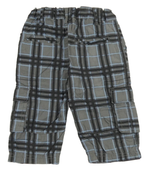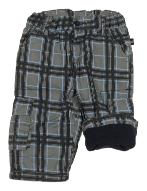 Sivo-modré kockované plátenné podšité nohavice s vreckami