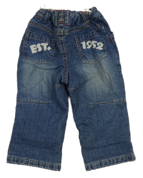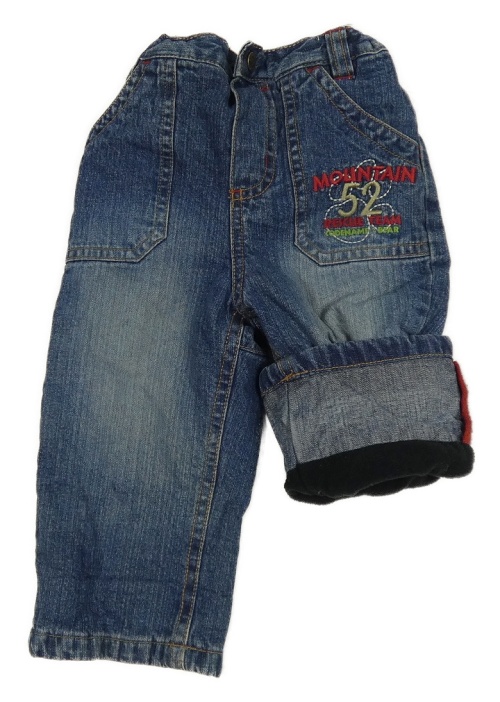 Modré zateplené rifle s nápisom C&A
