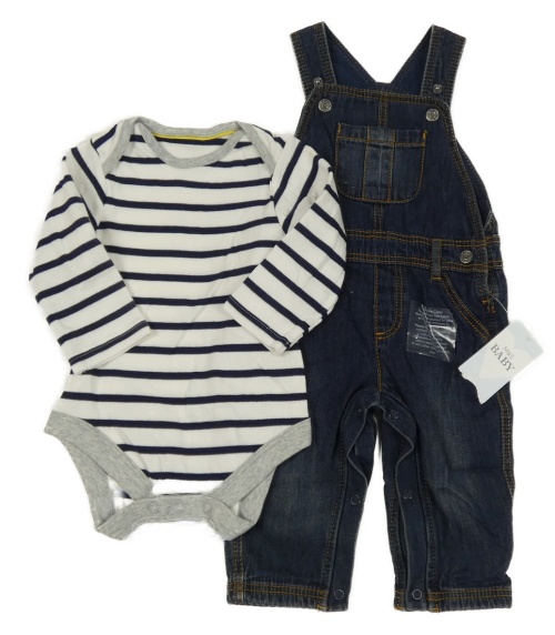 • Nové - 2Set - tmavomodré rifľové na traké podšité kalhoty + bílo/tmavomodré pruhované body M&S