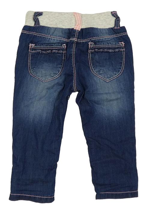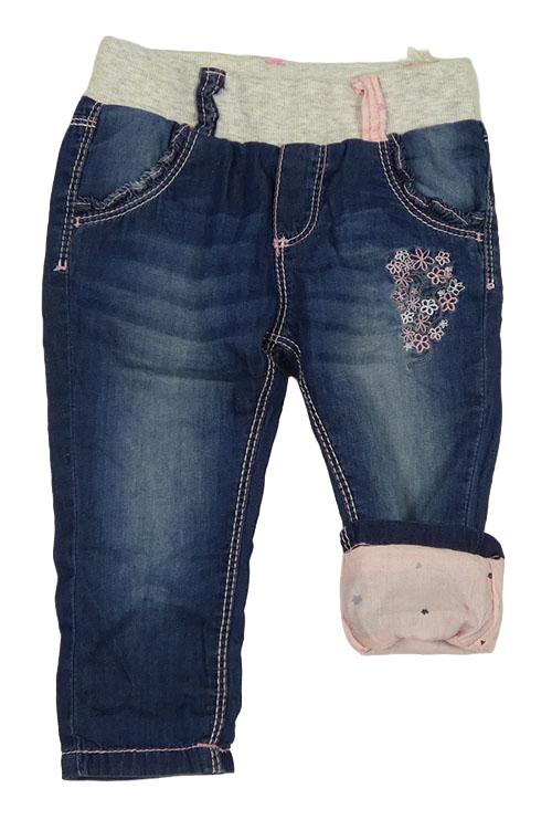 • Tmavomodré podšité kalhoty riflového vzhledu s výšivkami květin a úpletovým pasom Dopodopo