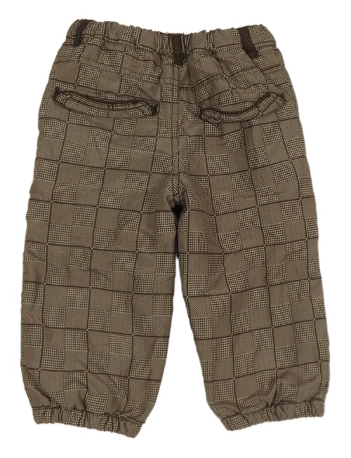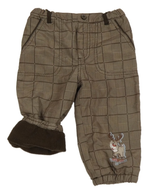 Hnedé kockované šušťákové zateplené nohavice so sobom