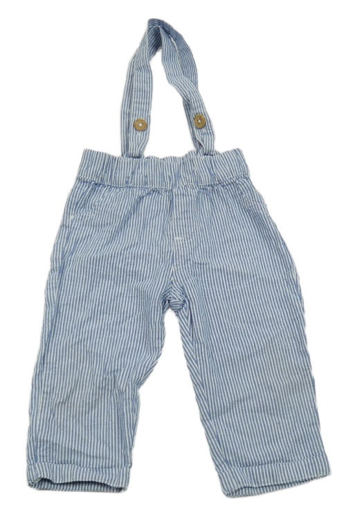 Modro-biele pruhované chino krepové nohavice s trakami