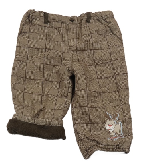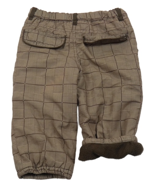 Hnedé kockované šušťákové zateplené nohavice so sobom
