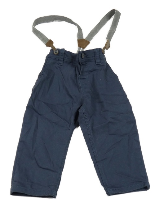 Tmavomodré plátenné nohavice s trakami H&M