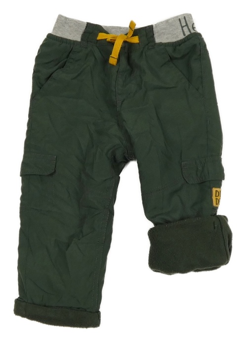 Tmavozelené šušťákové podšité nohavice s úpletovým pasom Ergee
