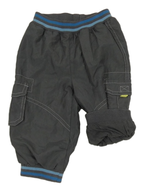 Tmavosivé šušťákové podšité nohavice s úpletovým pasom