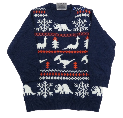 Tmavomodrý pletený sveter s dinosaurami a vločkami Lily & Dan