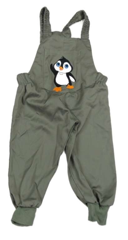 Šedozelený plátenný nohavicový overal s tučňákem