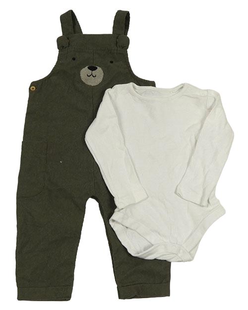 2set - Khaki rebrované na traké nohavice s medvědem + biele rebrované body Tu