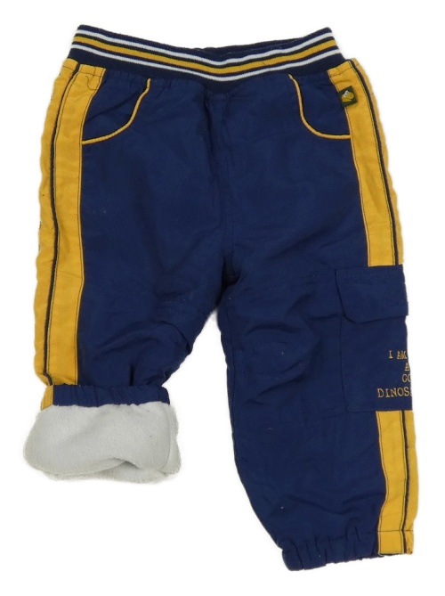 Tmavomodro-horčicové šušťákové zateplené nohavice s pruhmi