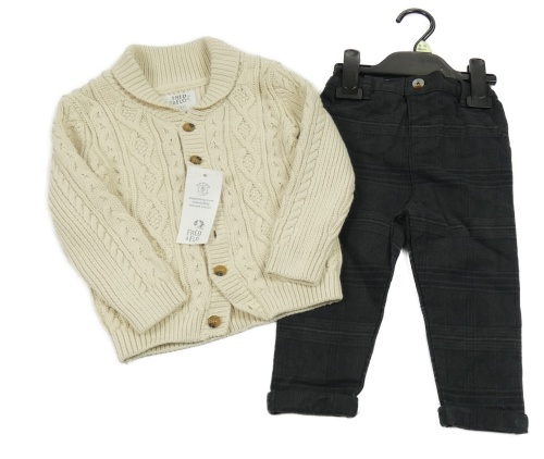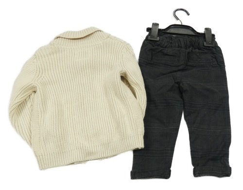 • Nové - 2set - Tmavošedo-čierne kockované plátenné chino kalhoty + béžový prepínaci sveter F&F