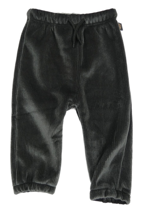 Tmavosivé rebrované plyšové teplákové nohavice Baby
