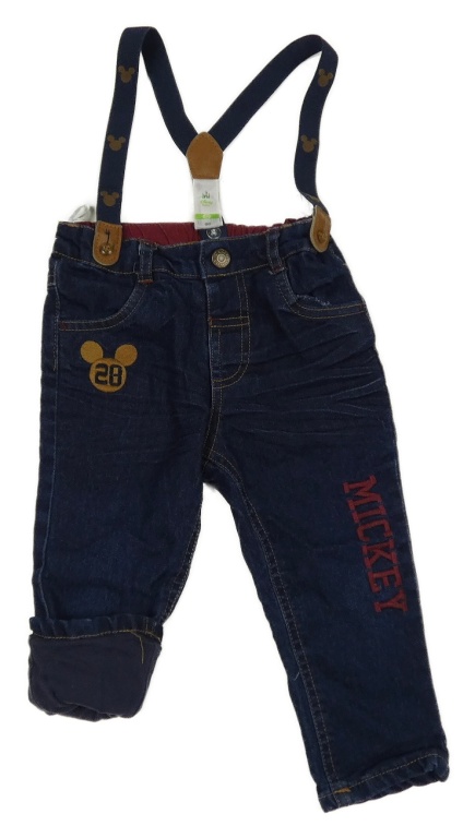 Tmavomodré podšité skinny rifle s Mickeym a trakami C&A