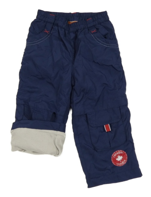 Tmavomodré šušťákové zateplené nohavice s nášivkou