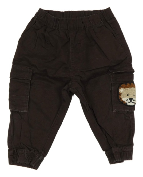 Tmavohnedé cargo cuff plátenné nohavice so lvem a opičkou Next