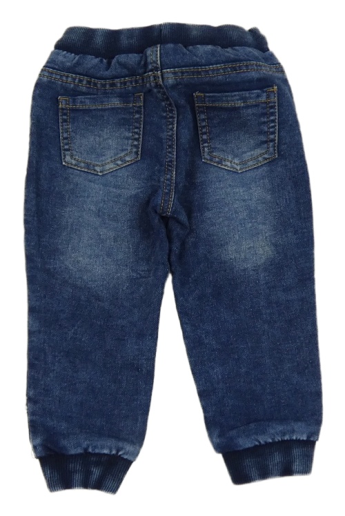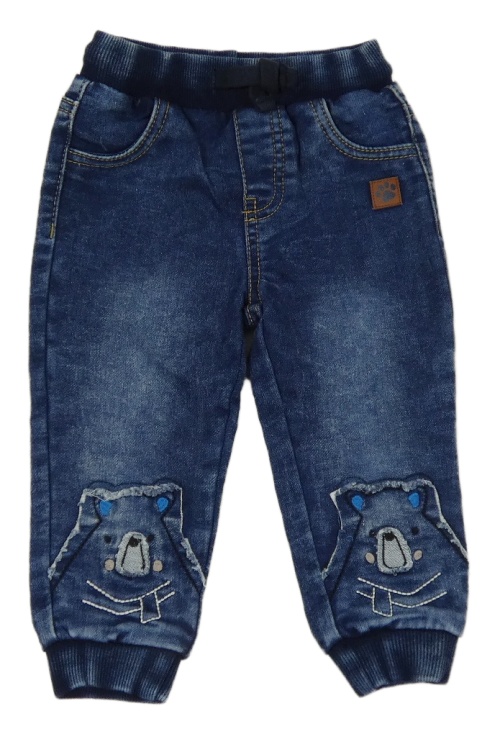 Tmavomodré cuff teplákové rifle s medvedíkmi a úpletovým pasom so cute