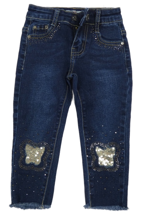 Tmavomodré skinny rifle s flitrami