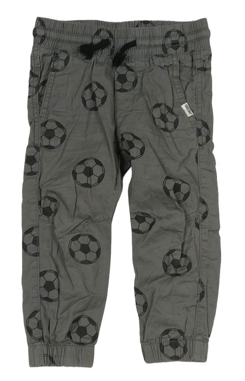 Tmavosivé cuff plátenné nohavice s futbalovymi loptami H&M