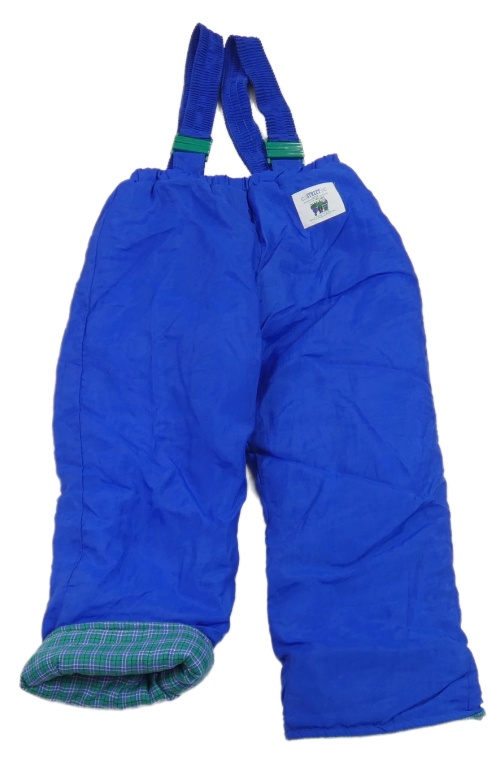 Královsky modré šusťákové oteplovačky s trakami a nášivkou