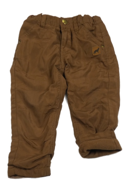 Hnedé šušťákové zateplené nohavice s nášivkou Pusblu