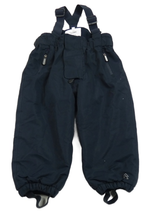 Tmavomodré šusťákové zimní oteplovačky s trakami Topomini