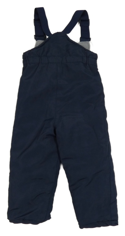 Tmavomodré šusťákové laclové oteplovačky so zvířaty