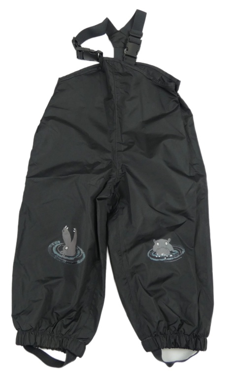 Tmavosivé šušťákové nepromokavé na traké podšité nohavice s hrošíky impidimpi