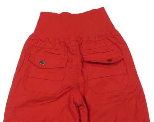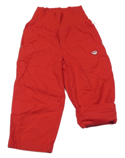Červené plátenné podšité nohavice s úpletovým pasom