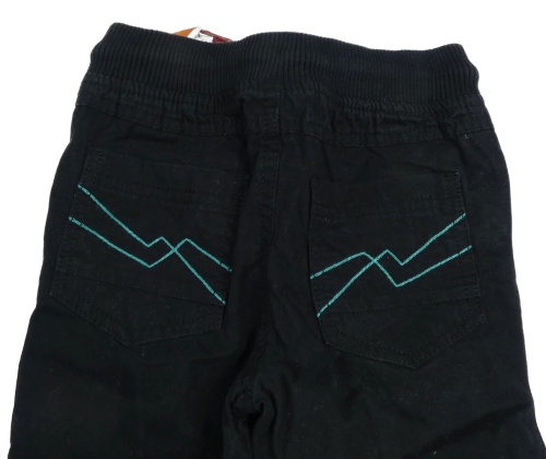 Nové - Čierno-tyrkysové podšité plátenné cuff nohavice s úpletovým pasom Lupilu