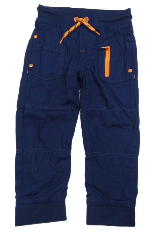Tmavomodré plátenné podšité cuff nohavice s úpletovým pasom Kiki&Koko