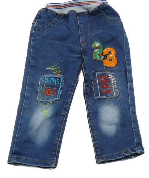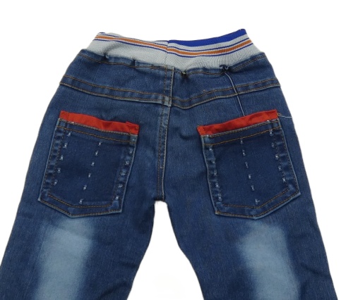 Modré rifle s nášivkami a úpletovým pasom