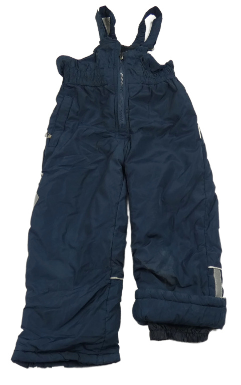 Tmavomodré šusťákové zimní oteplovačky s trakami