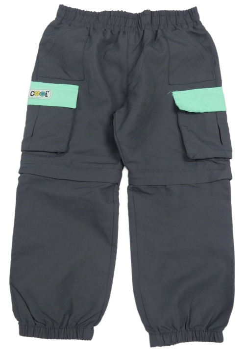 Antracitovo-tyrkysové šušťákové cargo cuff nohavice s odepínacími nohavicami Kiki&Koko