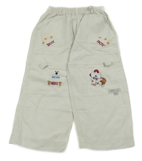 Svetlobéžové plátenné nohavice s medveďmi a hviezdami