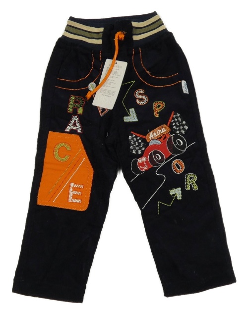 Nové - Tmavomodré menšestrové nohavice s autom a písmeny