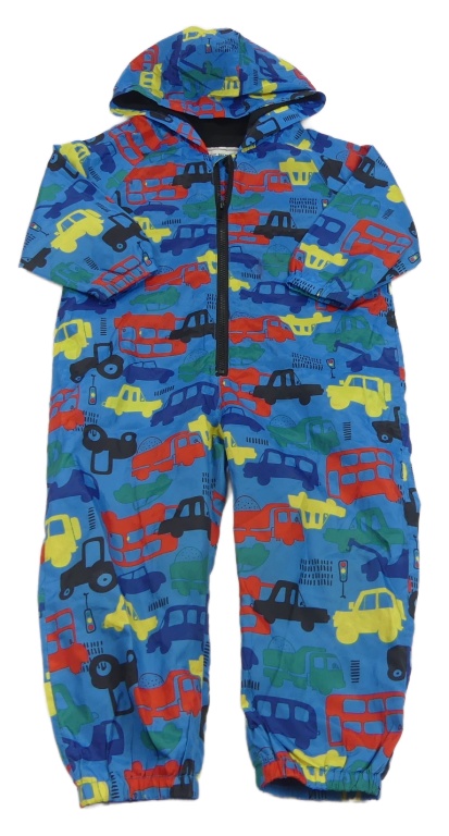 Modro-farebná šušťáková jesenná kombinéza s autami a kapucňou Matalan