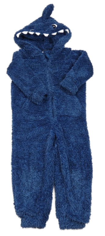 Tmavomodrá chlpatá kombinéza s kapucí - žralok Tu