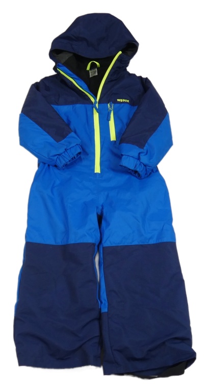 Tmavomodro-modrá šušťáková zimná funkčná kombinéza s kapucňou Wed'ze