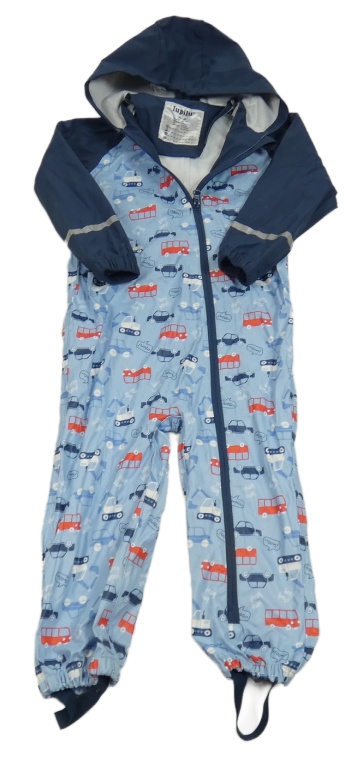 Tmavomodro-modrá nepromokavá kombinéza s autami a kapucňou Lupilu