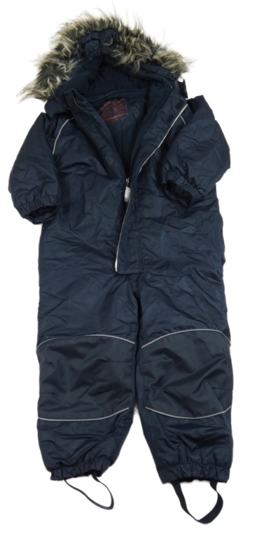 Tmavomodrá šušťáková zimná kombinéza s kapucňou s kožešinou Tchibo