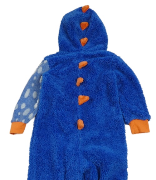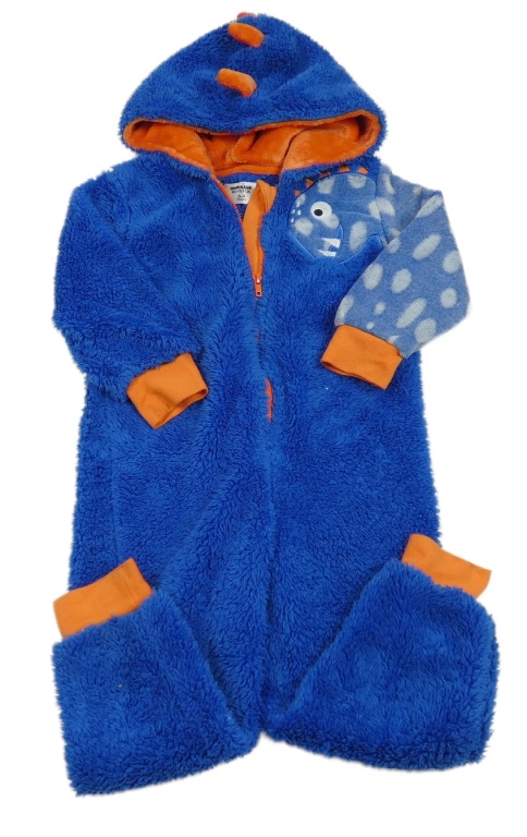 Modro-oranžová chlpatá kombinéza s dinem a kapucňou s ostny